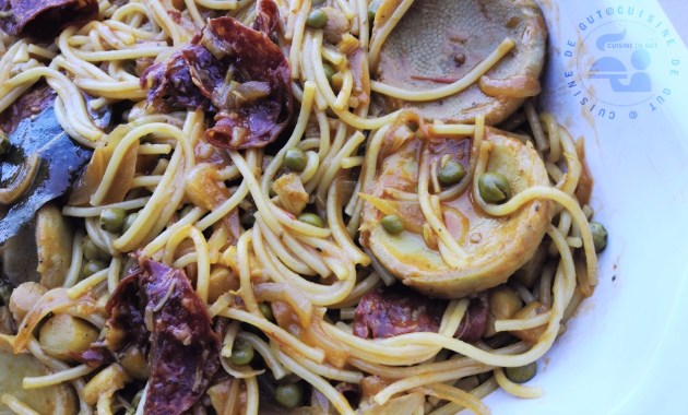 Spaghetti au chorizo noix de pétoncles et légumes Spaghetti au chorizo noix de pétoncles et légumes Comme il me restait des fonds d’artichaut de mon plat d’hier, j’ai de suite immédiatement su comment j’allais les utiliser. Ma chère Marlyzen […] Gut 30 septembre 2018 40 commentaires
