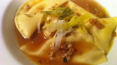 Raviolis de Gorgonzola et bouillon au « Vin jaune »