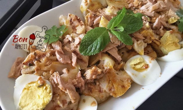 Bonjour !! je vous avais dit lors de la publication de mon velouté d’haricots verts que je vous conseille vivement, soit dit en passant, que je l’avais servi avec une salade composée. Eh bien la voici enfin. J’avais fait cuire la veille un petit chou fleurs que j’avais gardé entier au cuit vapeur dans l’intention de faire une salade avec le lendemain.