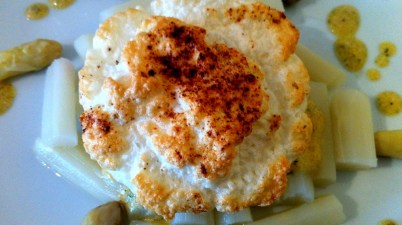 Asperges et son oeuf soufflé au Parmesan