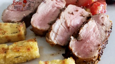 Porc sur grill, frites de polenta et salade. Une belle alternative à la cuisson plancha